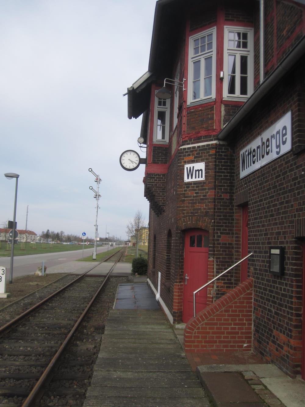 Wenn Sie unser Museum besuchen, erreichen Sie zunächst unser Museumsstellwerk Wm am Eingang zum Museumsgelände. Es war bis zur Jahrtausendwende in Betrieb. Von hier aus wurden die Weichen und Signale auf der ehemaligen Magdeburger Bahnhofsseite gesteuert. Auch die Schranken, die seinerzeit das davor zu erkennende Gleis und weitere daneben sicherten, wurden von hier aus gestellt. Wer früher zum Bahnhof wollte, musste diese Gebäude passieren. Alteingesessene Wittenberger berichten, dass die Schranken so oft geschlossen waren, dass man lieber den Fußgängertunnel benutzte, der die Gleise in Höhe des Signals unterquerte. Dieser Tunnel wurde Anfang 2000 verschlossen.