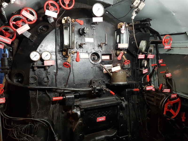 Der Führerstand der Dampflok 50 3624 wurde für Besucher hergerichtet. So wurden beispielsweise alle Bedienelemente auf dem Führerstand gekennzeichnet und die Beleuchtung ergänzt. Zudem lädt eine freundliche Schaufensterpuppe in Heizeruniform zum Betreten des Führerstands ein.