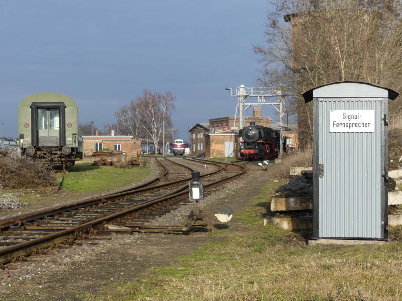 Dann haben wir noch zwei Winterimpressionen. Heiko hat zwei Stillleben aufgenommen. Auf dem ersten sonnt sich unser blauer Skl. Auf dem zweiten erkennt man die neue Fernsprecherbude und einige Exponate im Hintergrund.