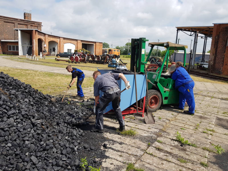 Während dessen wurde der Behälter zum Bekohlen unserer kleinen Dampfloks mit Kohle bestückt