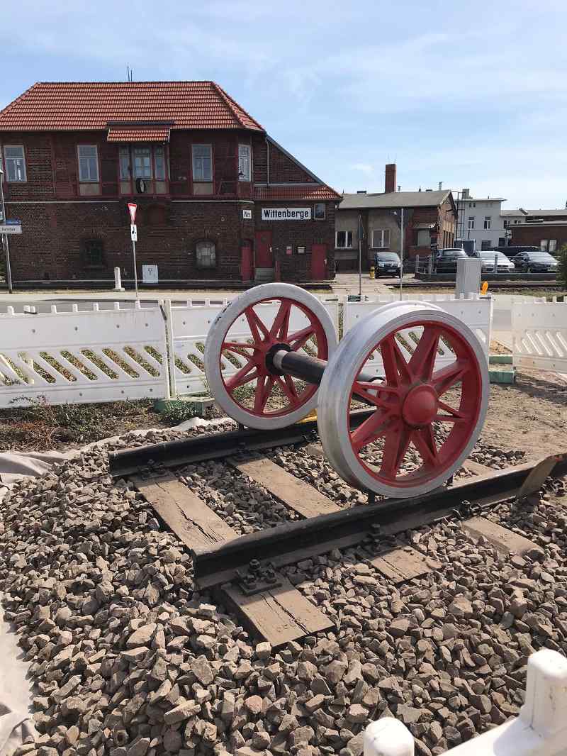 Bereits im Laufe der vergangenen Woche wurde wieder an unseren Gleisanlagen gearbeitet. Hier wurden noch etliche Holzschwellen gegen solche aus Beton getauscht. Außerdem wurde an der Straßenecke gegenüber unserem Stellwerk Wm eine Eisenbahnachse auf einem Stück Gleis aufgestellt, um auf unser Museum hinzuweisen.