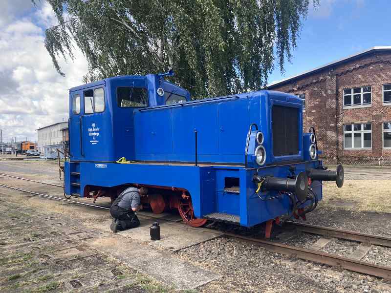 Am vergangenen Wochenende fand unser traditionelles Sommerfest im Historischen Lokschuppen Wittenberge statt. Mit den Vorbereitungen dazu hatten wir bereits am Donnerstag davor begonnen. Es galt zunächst, unsere betriebsfähigen Fahrzeuge für ihren Einsatz vorzubereiten. Dazu gehörte der ein oder andere Lokputz, das Anheizen von Dampflokomotiven, das Abschmieren auch von Dieselloks, einige Rangierarbeiten und natürlich die Vorbereitung des Caterings. Hier einige Bilder dazu.