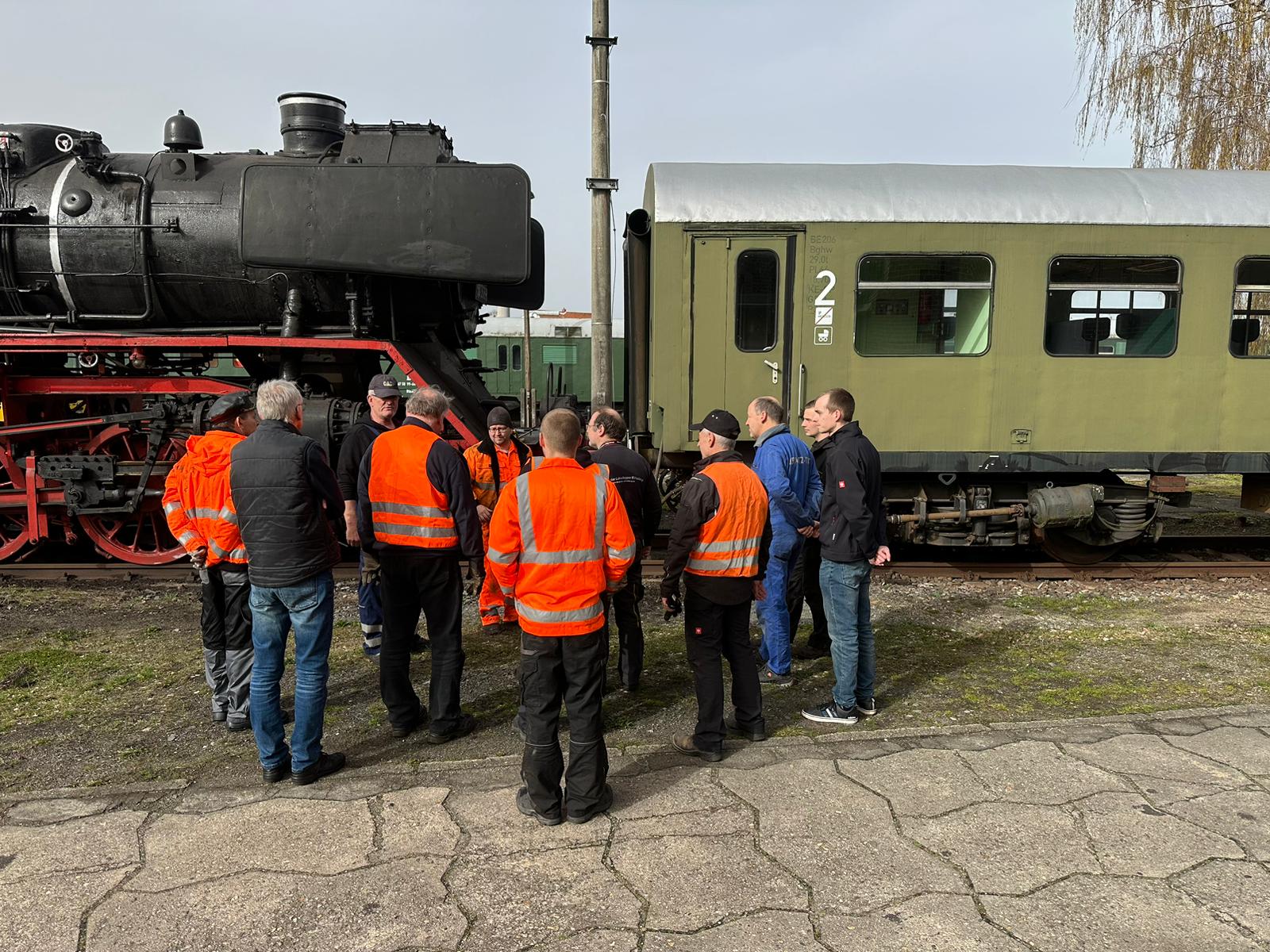 Im Lokschuppen waren die Schweißer und Schlosser fleißig und haben an den Fahrzeugen gearbeitet. In der Werkstatt waren alle Arbeitsplätze belegt.