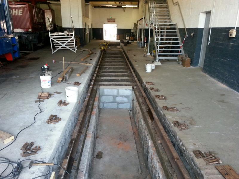 Nachdem wir festgestellt haben, dass der hölzerne Unterbau des Lokschuppengleises 16 langfristig nicht mehr tragfähig war, ist nun eine Erneuerung angesagt. Das Gleis und die Längsschwellen wurden entfernt und neues Material wird derzeit eingebaut, damit das Gleis zum Sommerfest am 4. und 5.7.2015 befahrbar wird und wir auch Platz für weitere Exponate haben.
