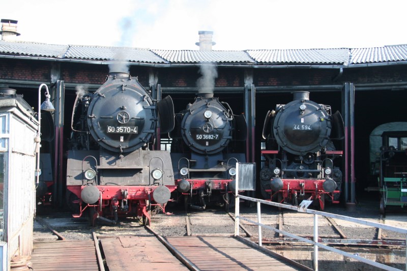 50 3570 im Beisein von 44 594 und ihrer betriebsfähigen Schwester 50 3682