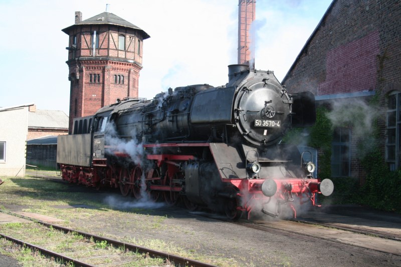 50 3570 vor dem Wasserturm des Bw Salzwedel