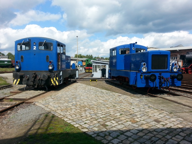 Auch hat die Aufarbeitung unserer Dieselloks der Baureihe V22 Fortschritte gemacht. Die ehemalige Lok 3 der Zellstoffwerke Stendal (links im Bild) wurde neu lackiert und trägt nun die Beschriftung als Werklok der ehemaligen Ölmühle Wittenberge, die früher eine baugleiche Lok im Einsatz hatte. Die ehemalige Lok 2 der Zellstoffwerke (rechts im Bild) wurde inzwischen hauptuntersucht und steht nun für Fahrten zur Verfügung.