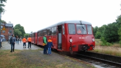 Auf die Drehscheibe vor dem Lokschuppen haben Vereinsmitglieder mittlerweile eine Diesellok 118 692 - 3 gefahren. Kameras fangen an zu klicken. Es ist quasi ein Vorspiel für die abendliche Fotoschau mit extra dafür arrangierten Museumsfahrzeugen.